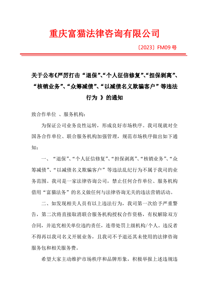 【公告】《嚴厲打擊“退保”“個人征信修復”“擔保剝離”“核銷業務”“眾籌減債”“以減債名義欺騙客戶”等違法行為 》的通知